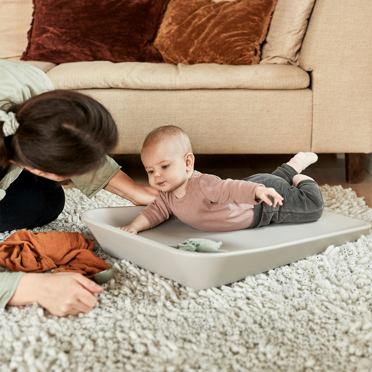 Dank ihres festen Bodens kannst du Matty™ flexibel einsetzen – auf der Wickelkommode, auf dem Fußboden oder sogar unterwegs auf dem Rücksitz deines Autos. Die rutschfesten Gummifüße auf der Unterseite verhindern das Verrutschen und sorgen für Luftzirkulation, damit keine Abdrücke entstehen. So ist die Wickelauflage überall einsetzbar und stets sicher und praktisch.