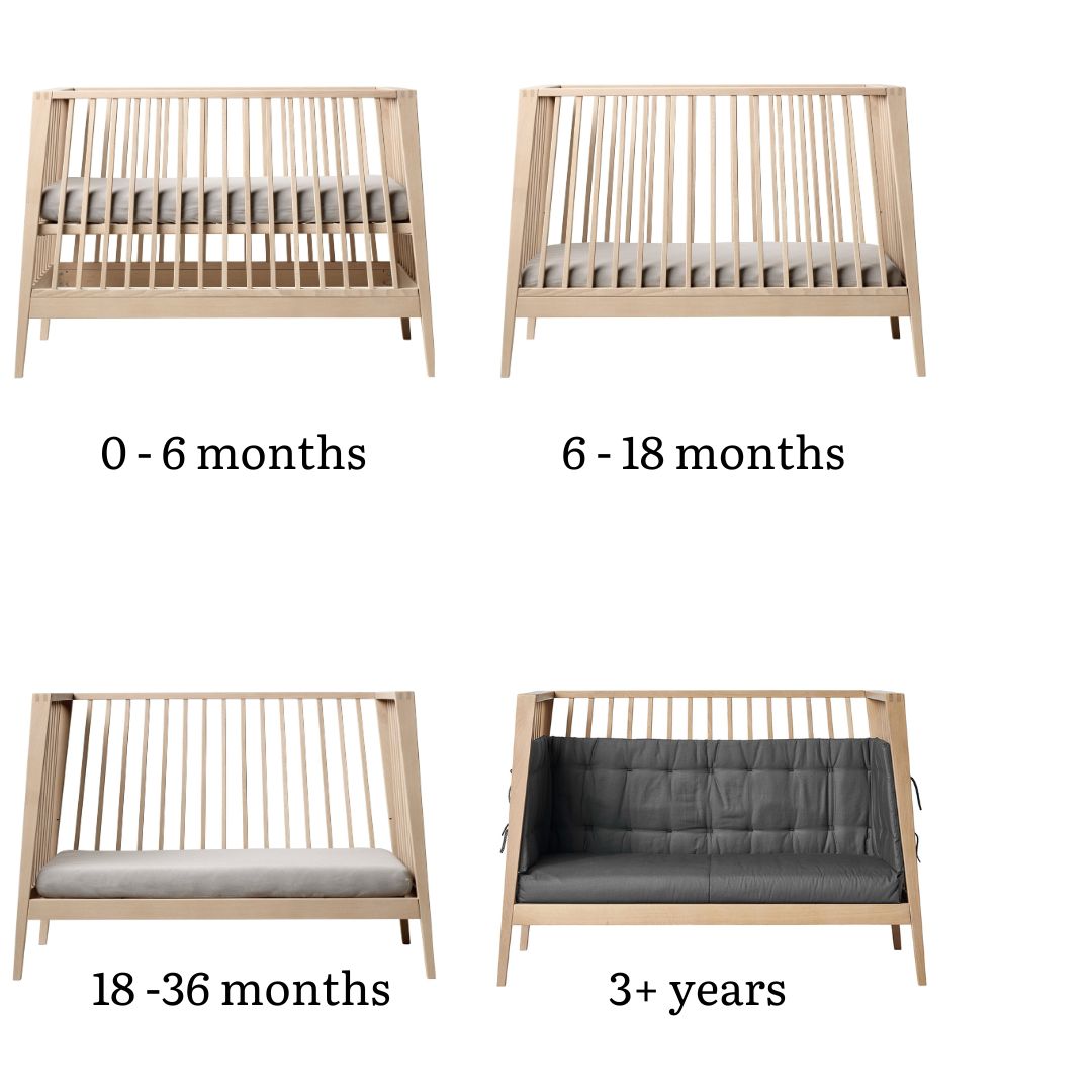 Das Linea™ Babybett überzeugt durch seine handwerklichen Details und 4 flexible Einstellungen: Starte mit der höchsten Position für Neugeborene und senke den Lattenrost, sobald dein Kind wächst und sich aufrichten kann. Wenn es selbstständig aus dem Bett klettern kann, entfernst du einfach eine Gitterseite. Später lässt sich das Bett in mit dem Sofa Umbauset ein schickes, kleines Sofa verwandeln. Die passenden Textilien wie Betthimmel und Gestell sowie ein Nestchen zur Linea™ Serie bieten unzählige Kombinationsmöglichkeiten und die separat erhältliche Original Leander-Babymatratze sorgt für optimalen Schlafkomfort.